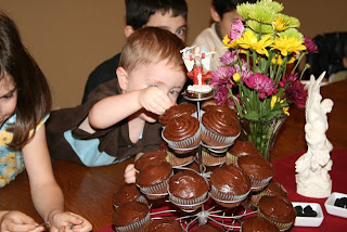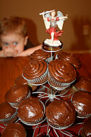 of course Devil's Food Cupcakes complete with little swords for stabbing the