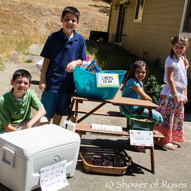 Early last week (after splurging on a new bunk bed for the girls using "Bill Me Later") I decided to have a Yard Sale! We live a ways from town on a dead end road and I wasn't sure if it would be much of a success, but I figured it was worth a shot... As I was working on decluttering our home, our older children were busy with their own preparations!
