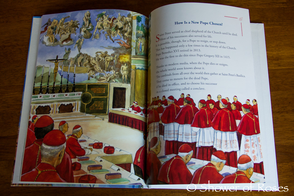 I'm so excited about this new book recently published by Magnificat/Ignatius! I love it!!! I have been considering saving it to put in someone's Easter basket this year, but I don't know if I can wait that long before sharing it with the children. It is a perfect addition to our Papal Unit Study - which we ended way too quickly following the election of Pope Francis and the arrival of Easter last spring. With the upcoming canonizations of Pope John XXIII and Pope John Paul II on April 27th, I think I'm going to pick up where we left off and continue our Papal Unit Study with this great book! (It's also perfect for the upcoming feast of The Chair of St. Peter on February 22nd!)