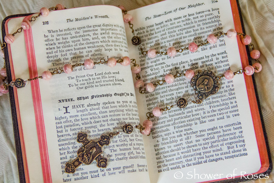 | The Catholic Girls Guide by Father Lasance and St. Therese rosary from Gail Giron Designs |