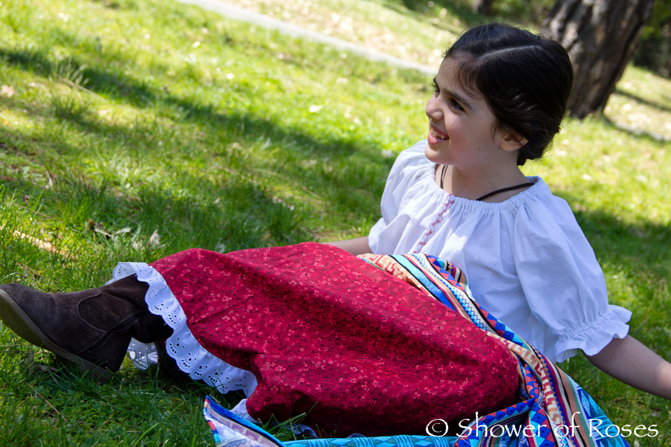 We choose a few games from The American Girl's Party Book. This book is out of print, but we were able to purchase a copy for pretty much the cost of shipping. We choose a few Spanish Songs and Games to play outside on our beautiful spring day!