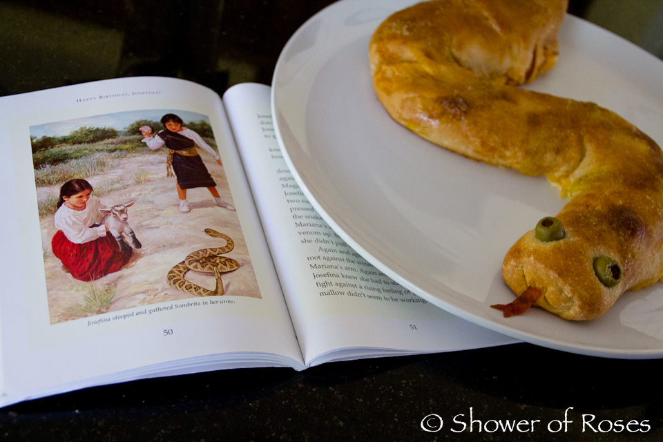 Then everything happened so fast it was a blur. The snake gave a menacing rattle. Mariana threw the rock at it and missed. The snake whipped its head around, shot forward, and struck Mariana on the arm with its fangs." ~ Happy Birthday, Josefina!