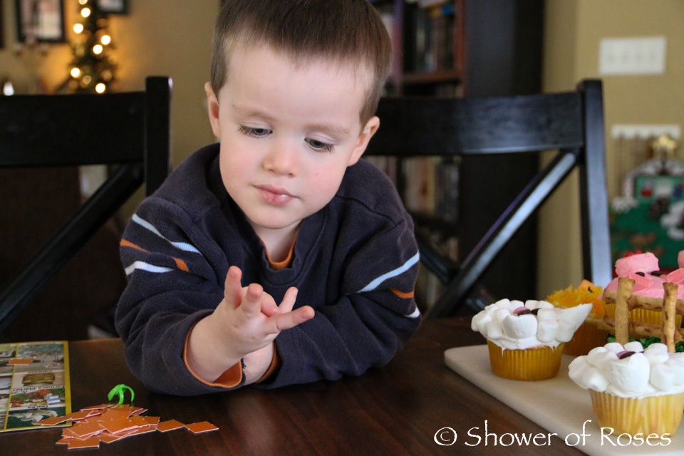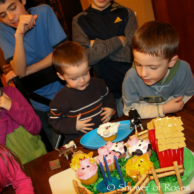 Books, Bingo, Birthday Cake, and Birthday Gifts... That's how we celebrated Bud's 3rd birthday last December! The cake took the most time and effort to create, but it was so much fun to make and the birthday boy LOVED his cake! You can find the directions for creating my Barnyard Birthday Cake here and pictures of the birthday boy discovering his cake in the morning here. Here are the rest of the pictures from his special day.