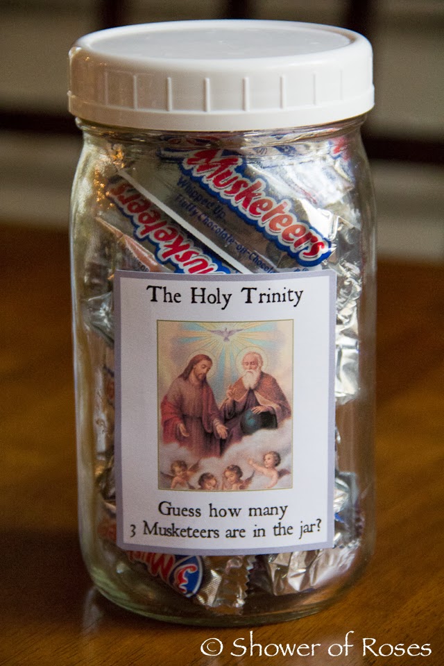 The Holy Trinity :: Miniature "3 Musketeers" candy bars represent our one and the same God in three Divine Persons - the Father, the Son, and the Holy Spirit.