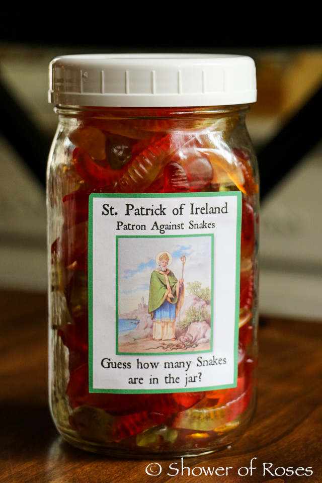St. Patrick of Ireland :: Pious legend credits St. Patrick with banishing snakes from the island of Ireland, chasing them into the sea. Regardless of whether or not this legend is true, St. Patrick is the patron saint against snakes, fear of snakes, and snake bites. Gummy Worms look like snakes.