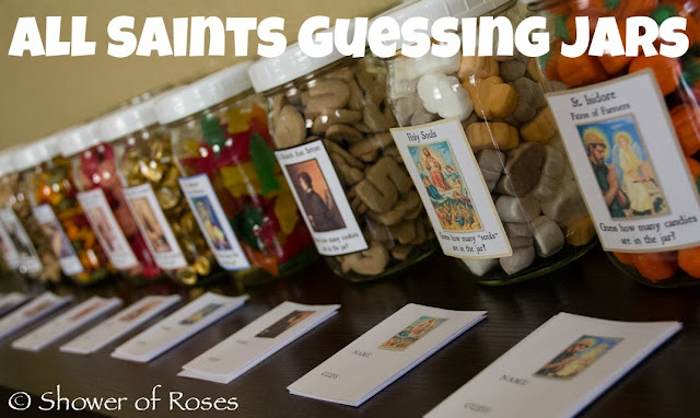 our annual All Saints Party last year that we will be including them again this year with 12 MORE Saint Themed Guessing Jars!