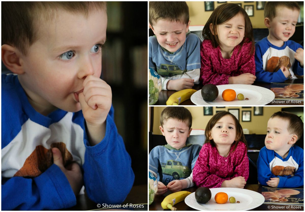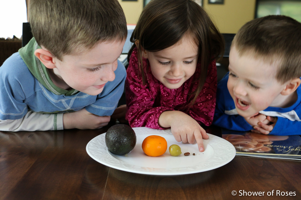 ... and then comparing the size of a baby at different stages to various foods, making a few substitutions based on what we happened to have in the kitchen.