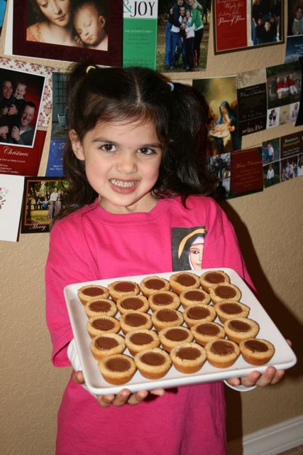3. Bake 10 to 12 minutes until puffed and lightly browned; remove from oven. Immediately press peanut butter cup or piece onto each cookie. Cool completely in muffin pan. About 3-1/2 dozen cookies. (Using the small Pampered Chef Scoop, we ended up with almost 4 dozen cookies, though I did have to open a second bag of peanut butter cups.)