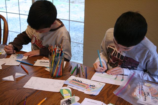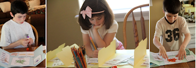 As the children completed their mini-books, we stored them in a plastic zip-lock bag until they were ready to assemble to whole lap book. We started doing this after a cup of water was spilled on most of their mini-books for Part 2 of their Astronomy