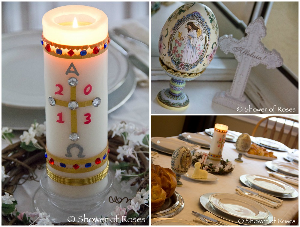 I ran out of time to create a new Paschal Candle this year, so I peeled off last year's "2" and reshaped it into a "3"... It wasn't anywhere near perfect, but it worked, and still looked pretty. I love decorating beeswax!