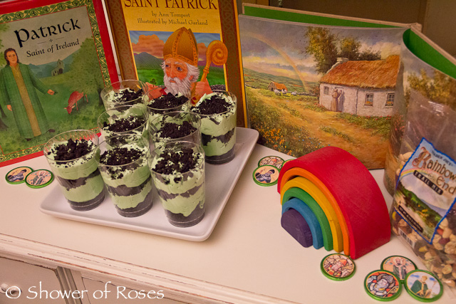 I did end up making the St. Patrick's Day Pudding! This time I made it in individual cups, only for the healthy members of our family... I also had purchased some Rainbow's End Trail Mix and Green Coins (instead of Gold) after digging through the box of "Bunny Bucks" at the store to find the bags with the most green... We'll be saving those for Easter too!