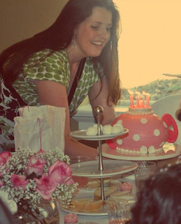 The Tea Pot Cake was such a hit at my daughter's Tea Themed Birthday Party yesterday!  Since a few of you asked if I could share how I made the cake I will try and put together a little tutorial.  I hope this helps!  Please let me know if you have any other questions.