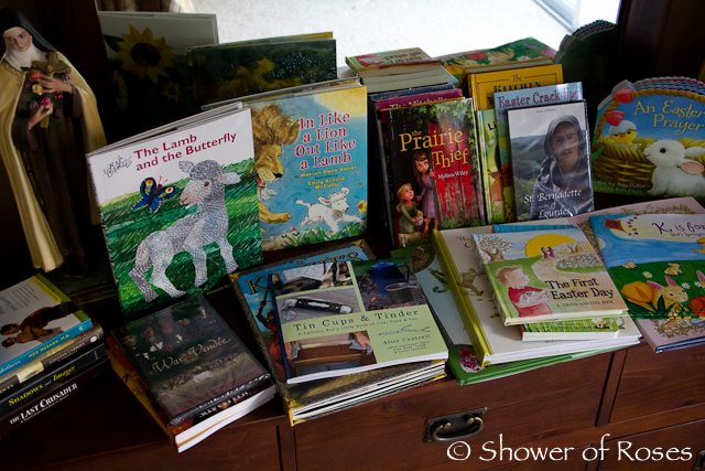 (i.e. Saint, Catholic, etc.) theme. This year I ended up choosing quite a few books (6 each!) to fill the children's baskets