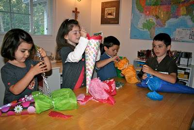 I used a combination of this and this tutorial and they were quite easy to make.  I especially liked using the wrapping paper on the Schultütes for the girls, they turned out so pretty!