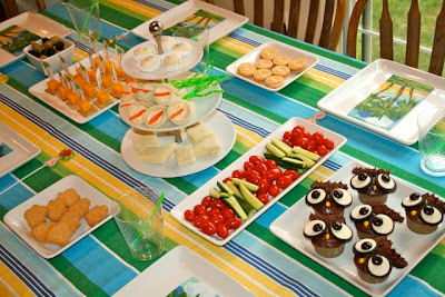 You can find Peacock Feathers, to decorate the table, at the craft store.
