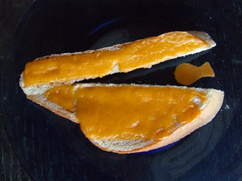Directions: Cut bread as shown. Top with Cheddar Cheese. Toast in oven.