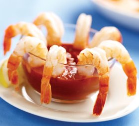 An Easy alternative to the recipe below would be to just pick up a Shrimp Cocktail platter from your local grocery store.