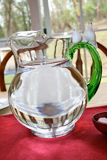 A pitcher of water would be simple and work just fine, but since we do have another drink suggestion, you could also decorate the center of the table with a small water fountain.