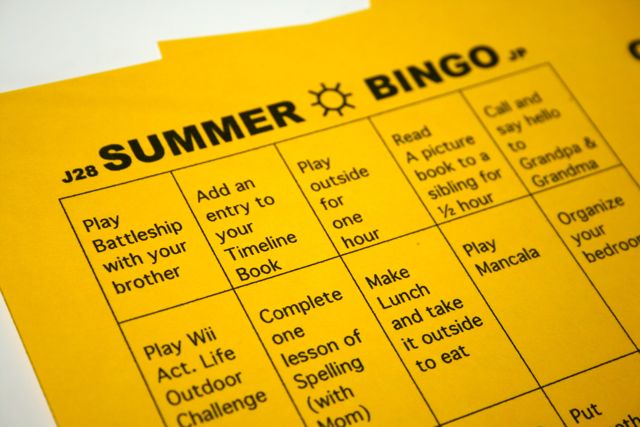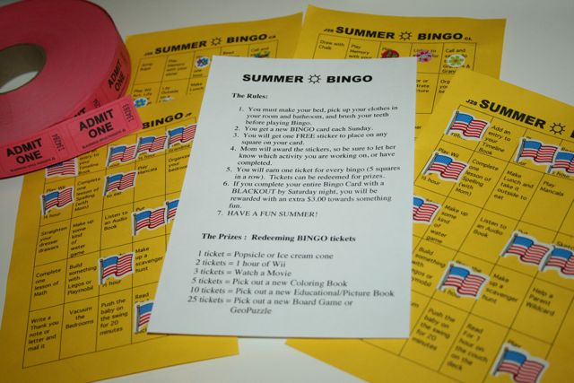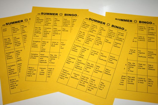Summer Bingo! Our oldest three all earned Blackout's last week and are already off to a great start this week. It has been a little harder for Chiquita but I made her card a but easier this week.