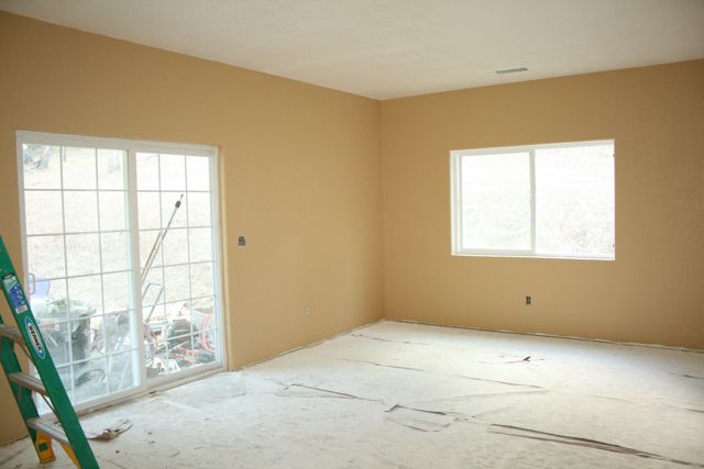 Oooh! I can't wait to see how the paint turns out. I'm a little bit nervous and just praying that the colors I choose look okay. . . (Yes, Cathy, I've had plenty of headaches and even a couple panic attacks from making all these decisions!) We decided to keep things fairly simple and are sticking with two neutral colors for the walls . The New Dining Room and Living Room will be Wilmington Tan (Thank you Aimee and Helen for the suggestion!) and our Entry/Old Living Room, Bathroom, Laundry Room and Kitchen will all be Philadelphia Cream with some more of the Wilmington Tan as an accent on the fireplace wall.