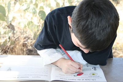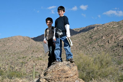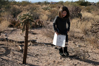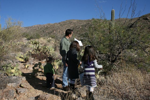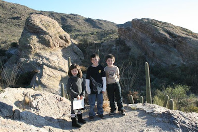 We then all headed into the park, as "Desert Detectives," searching for certain plants, animal tracks, nests or nibble marks on cactus, and other clues that animals leave behind. We also had fun looking for, and identifying, some of the birds in the park including Gambel's Quail, Cactus wrens, Red-Tailed Hawks, Cardinals and Turkey Vultures. We even saw a couple Roadrunners!