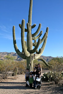 Hubby also took a picture of all of us next to the cactus we choose as our "family favorite:"