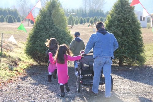On December 15th our little Rose turned two years old! I had all sorts of fun theme ideas that I wanted to do for her birthday, but with being full term with Bud I had to keep it simple. This year our "theme" revolved around searching for the perfect Christmas tree! ;) With our new little guy arriving on the 19th I never did have a chance to post pictures, but before too much more time goes by I wanted to go back and share some pictures from her special day.