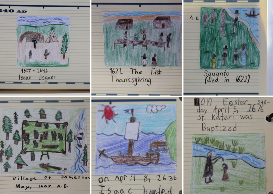 Instead of using the suggested "The Great Wakening: Men of Faith" we created our own mini-book with 4 inspiring Catholics that traveled to America and lived during Colonial Times: St. Francis Solano, St. Isaac Jogues, Fr. Eusebio Kino, and St. Kateri.