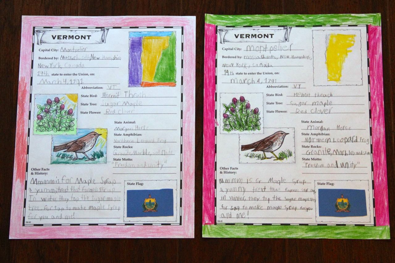 The state of Vermont was the 14th State to join the Union. For this state, the girls read M is for Maple Syrup: A Vermont Alphabet and then completed their Notebook Pages.
