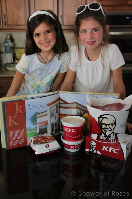 It was summertime by the time we got around to "baking" something for Kentucky, the 15th state in our State-by-State Study... Since Hubby was out of town at the time, and we had spent the day in town, we decided to just keep it simple and pick up some Kentucky Fried Chicken for a late lunch/early dinner.   Other than having some of the chicken at potlucks over the years, my kids didn't remember the last time we had ordered to-go at Kentucky Fried Chicken.  I actually think it was way back when Captain was a baby.  Anyhow, they really enjoyed the treat!