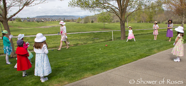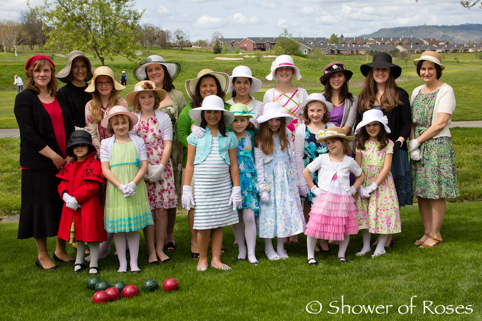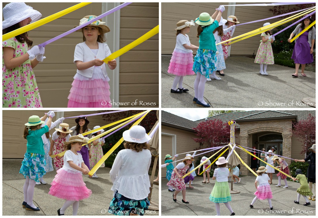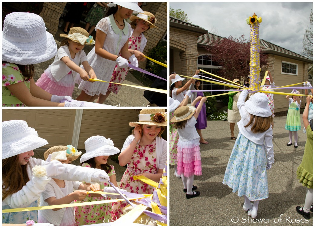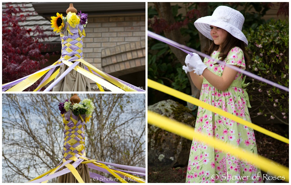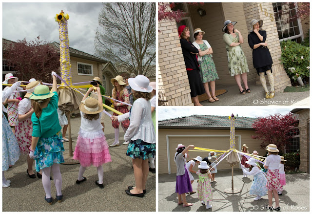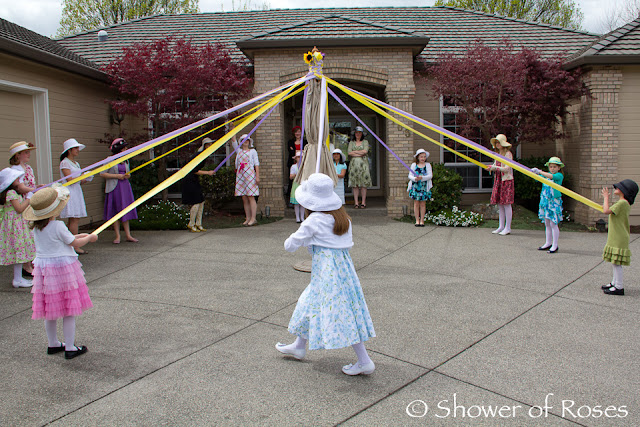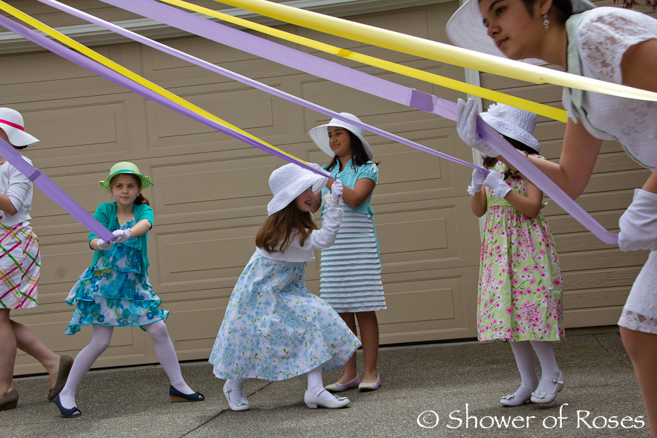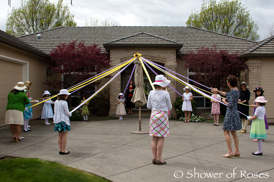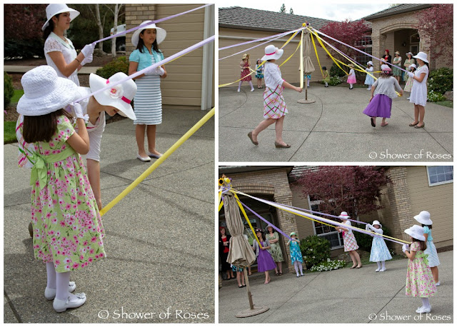 As I mentioned in one of my last posts, even though we had a forecast of rain and snow the weather cooperated for our Mother-Daughter Tea and we were able to include some outdoor activities for the girls including a Maypole!