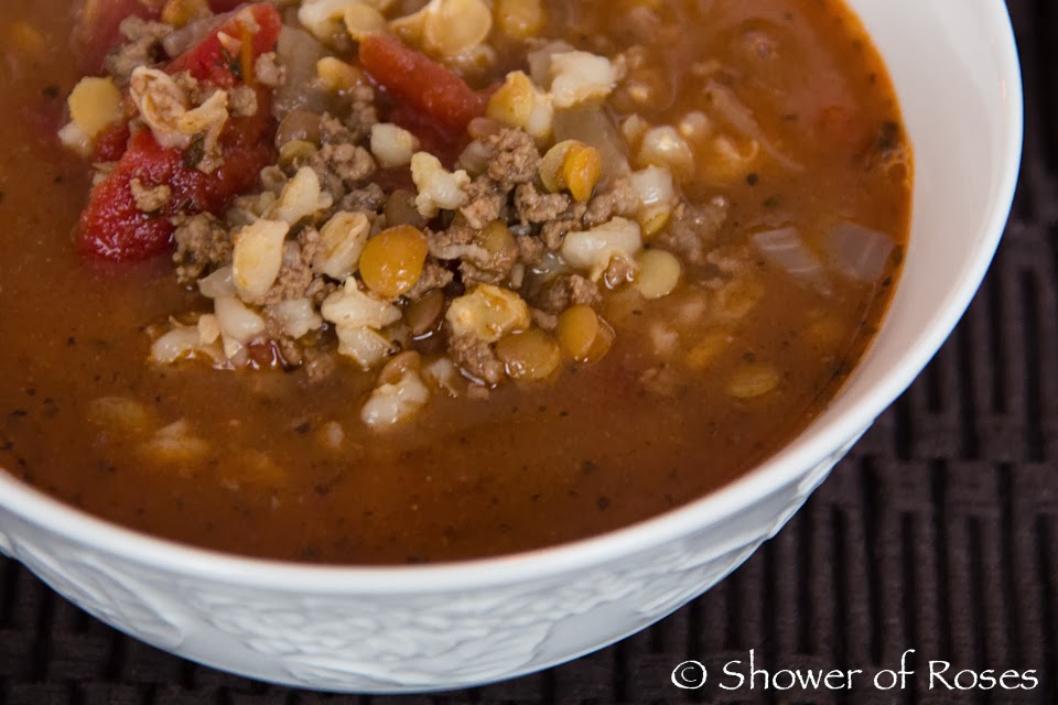 Beefed-Up Barley Soup my mom suggested when we were out shopping last week was so yummy! Perfect for these cold and snowy days after an afternoon sledding!