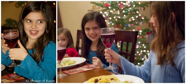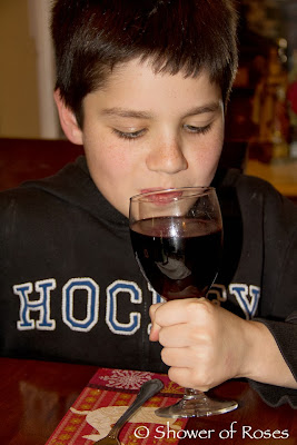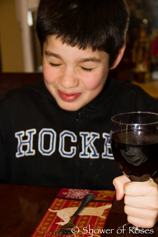 I diluted the children's spiced wine with lots of 7-up and also had some Sparkling Grape Juice as another alternative for those who were not interested in trying the (well boiled) wine.