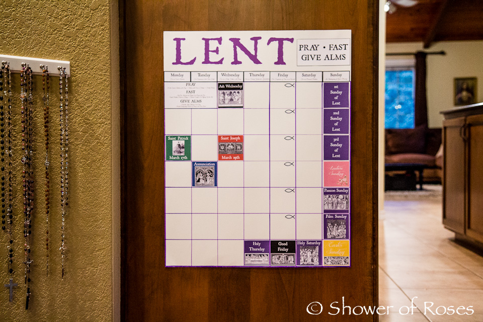 We are also choosing some things to offer up individually and as a family. I've left it generic on our calendar as "Personal Sacrifices I'm Offering Up for Lent."