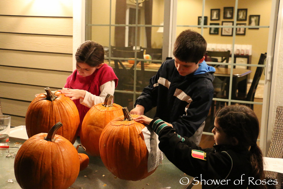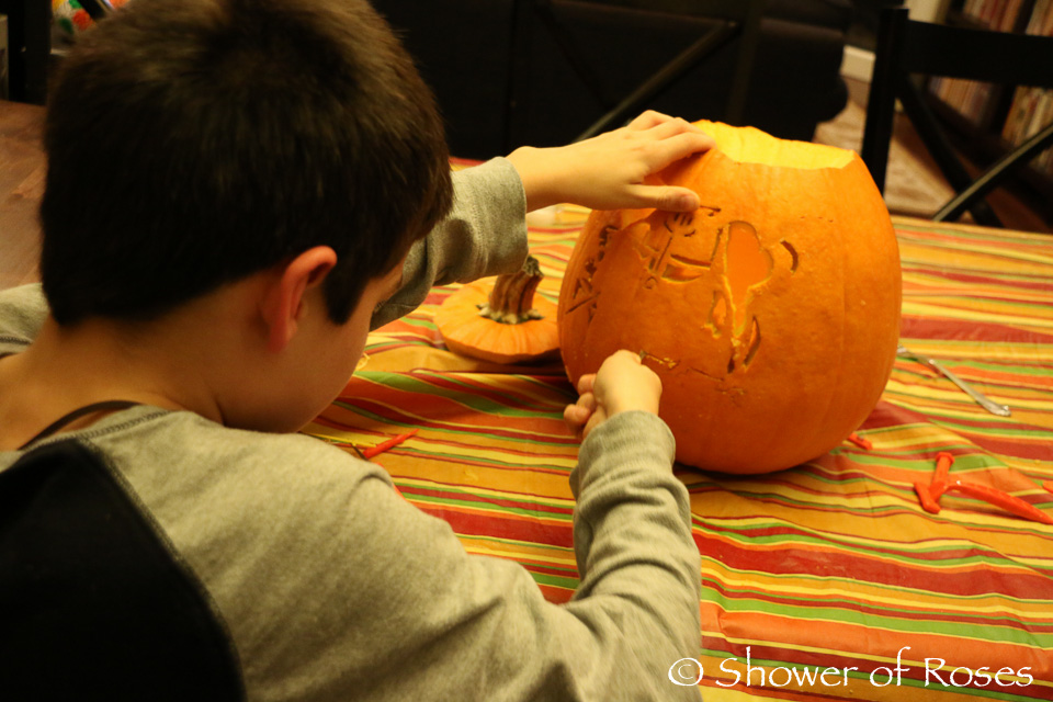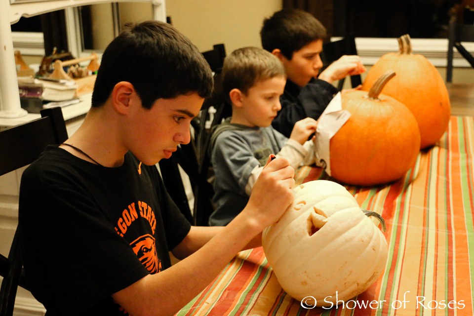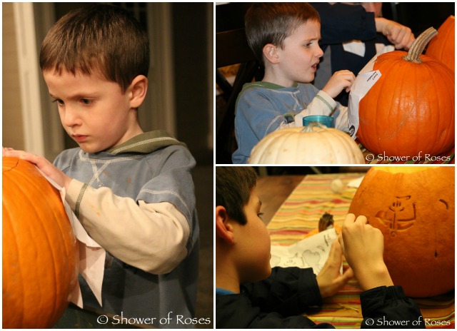 They were not so happy when I realized that I had no idea what happened to all our carving supplies! We finished carving the next night, after Sean picked up new supplies on his way home from work.