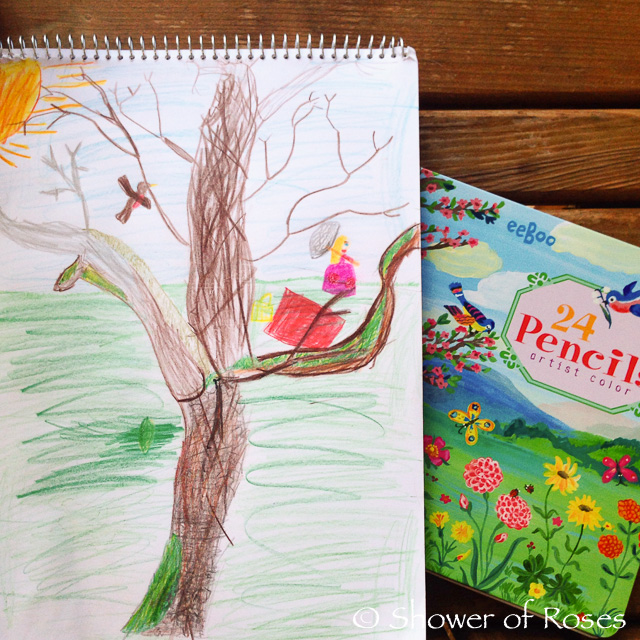 It's rainy and overcast today, but yesterday was gorgeous! I wish I would have pulled out my camera to capture a few pictures of my three girls up on the hill behind our home with their color pencils and sketchbooks. They loved spending their afternoon enjoying the sunshine!