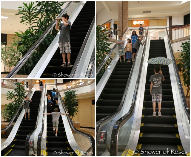 | Task 172: Riding an escalator going up while holding an open umbrella. (3 points) |