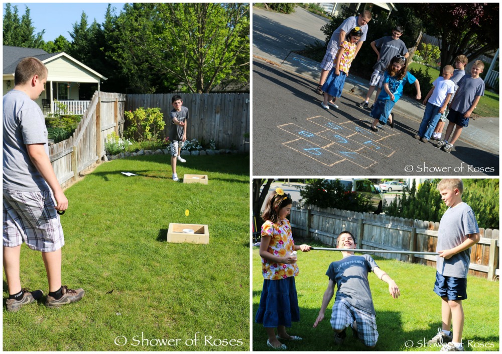 | Task 244: Playing a game of corn-hole with friends. (2 points) Task 63: Playing hopscotch with two or more friends. (3 points) Task 429: Limbo. (2 points) |