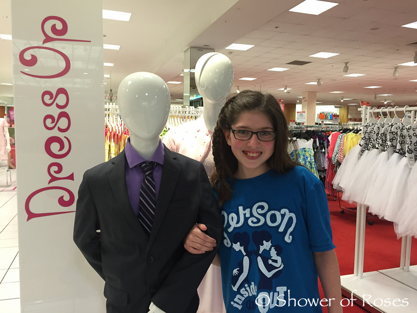 | Task 146: At a clothing store standing next to a mannequin. (3 points) |