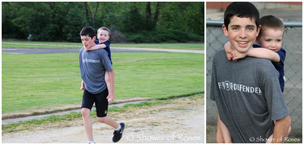 | Task 215: Running on an oval track and field track. (4 points) Bonus for carrying baby brother all the way around? The smiles and giggles were worth the effort! |