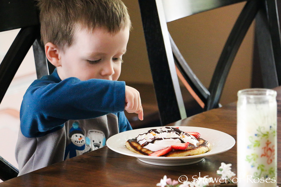 I went all out and enjoyed eating some bacon (representing roads?) and berries (representing the blood Jesus shed) for breakfast with a hot cup of Roasted Dandelion Tea (earth?) with some coconut milk for creamer (clouds?)… (All AIP approved!) My "sweetness of life in Heaven" was watching everyone enjoy their pancakes, hearing their rave reviews and "thank yous!", and getting to take a few pictures! ;)