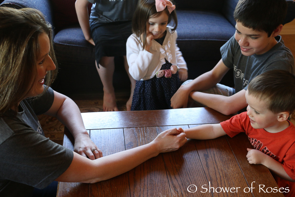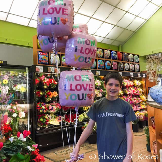 After Mass we stopped at the store to pick up a little bouquet of roses…