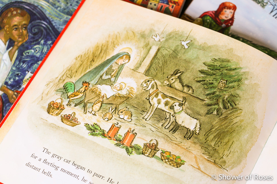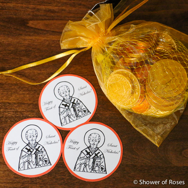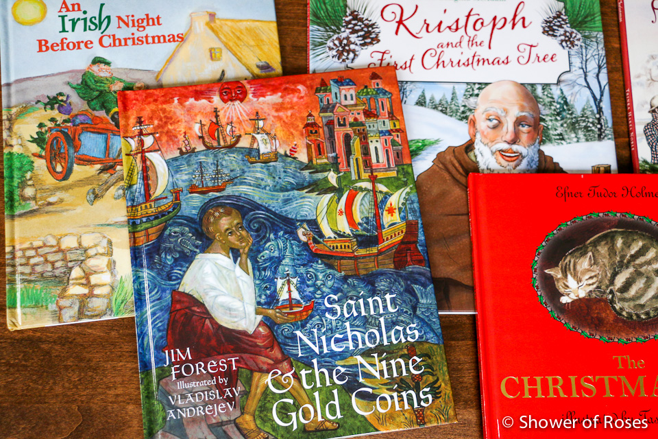 Every year on December 6th, the feast of St. Nicholas, our children wake up to find new slippers (or sometimes as new pair of shoes for winter) filled with treats and chocolate gold coins (last year the bags from Trader Joe's worked perfectly so I picked up seven more bags last week), along with a new Christmas picture book to add to our ever growing collection.