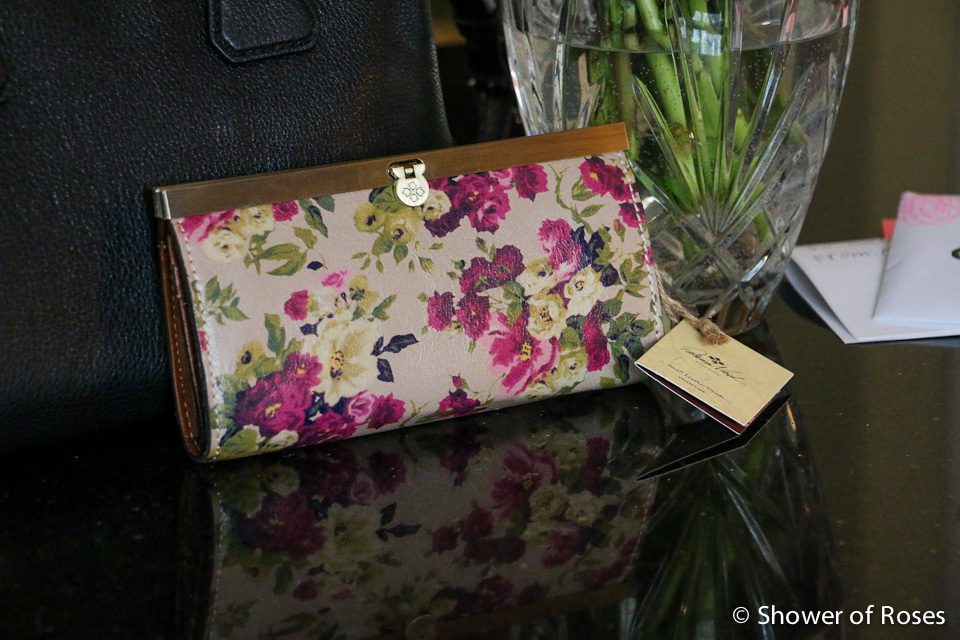 the theft last month... My husband decided to just let me pick them out myself this time and I ended up choosing a classic (not too deep! don't want to be tempted to keep too much in it ever again!) black leather satchel, but the wallet I choose is so pretty and colorful!