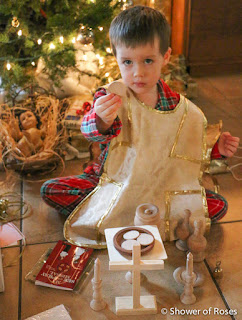 Wooden Catholic Mass Kit from Almond Rod Toys has been perfect for our toddler. He received it on Christmas morning and absolutely loves it!