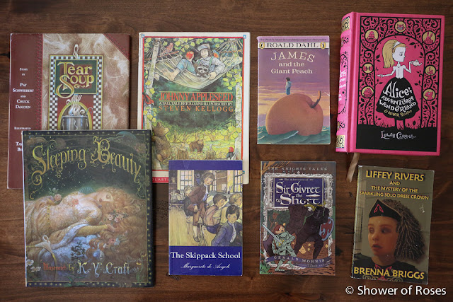 It's been about three weeks since we've been able to eat at the dining room table... It's been covered with books since starting the annual book sale. Still so much to do before our new school year begins! Sometimes I really miss having Our Little School Room.